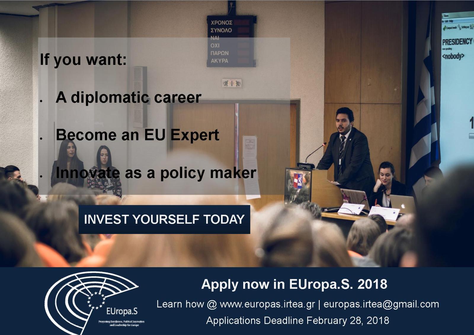 Αιτήσεις συμμετοχής και πληροφορίες για το EUropa.S. 2018 στην ηλεκτρονική ιστοσελίδα www.europas.irtea.gr