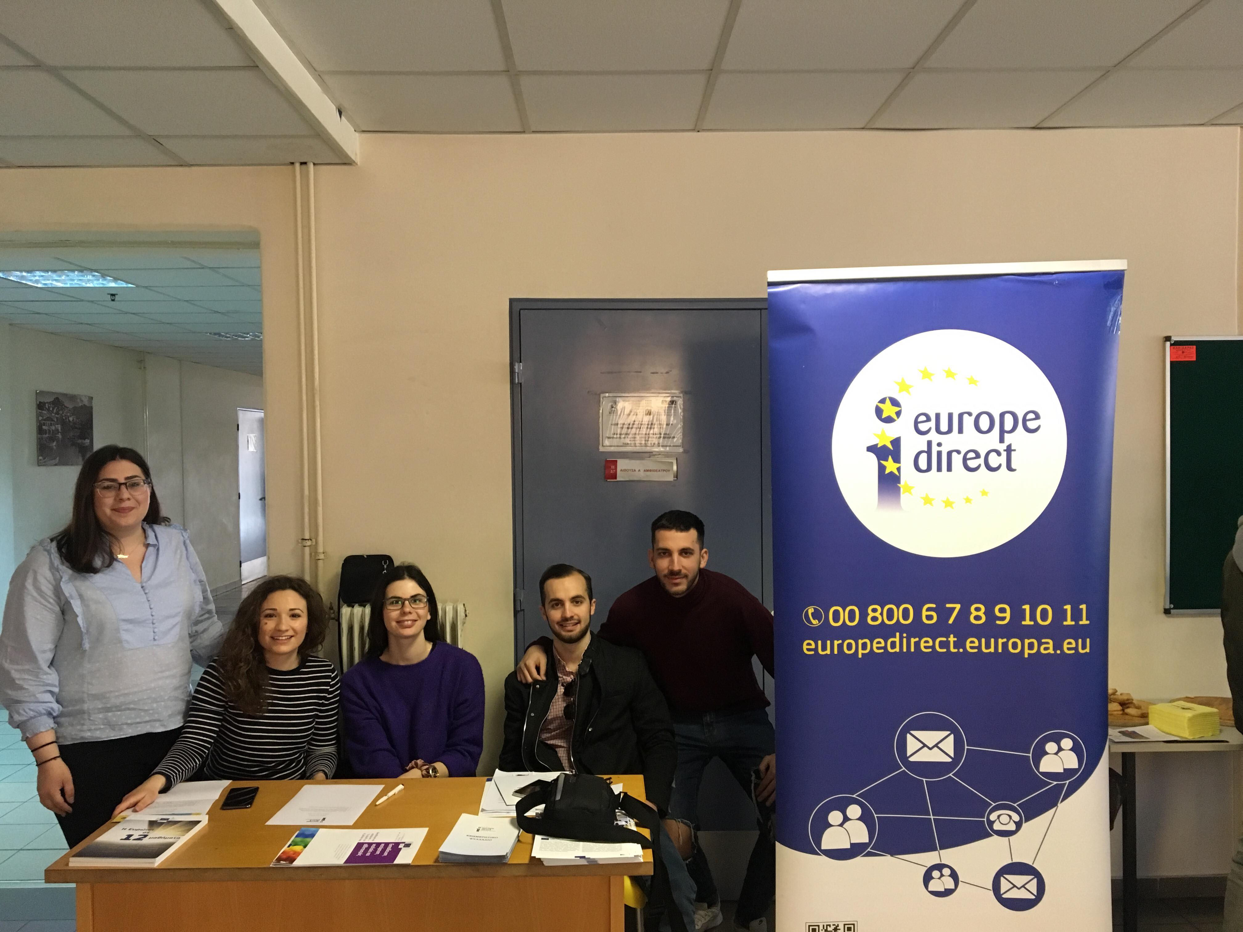 Το Europe Direct Βορείου Αιγαίου συνέβαλε και αυτό με την σειρά του στην προσπάθεια αυτή μιλώντας με τους νέους φοιτητές και φοιτήτριες για το μέλλον τους. Τα νέα παιδιά πληροφορήθηκαν για προγράμματα νέων που τρέχουν σε όλη την Ευρώπη όπως το Erasmus+ και το European Solidarity Corps καθώς και οι δυνατότητες που προσφέρει για εύρεση εργασίας μέσω του EU Careers Οι φοιτητές και φοιτήτριες παρακολούθησαν με μεγάλο ενδιαφέρον την προσπάθεια της Ευρωπαϊκής Ένωσης για την βοήθεια που προσφέρει στους νέους.