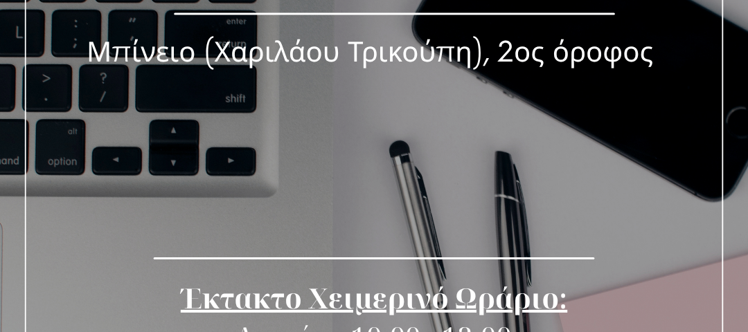 🕓 Ωράριο λειτουργίας: Δευτέρα 10:00 – 13:00, Τετάρτη 9:30 – 11:00, Πέμπτη 12:00 – 13:30
