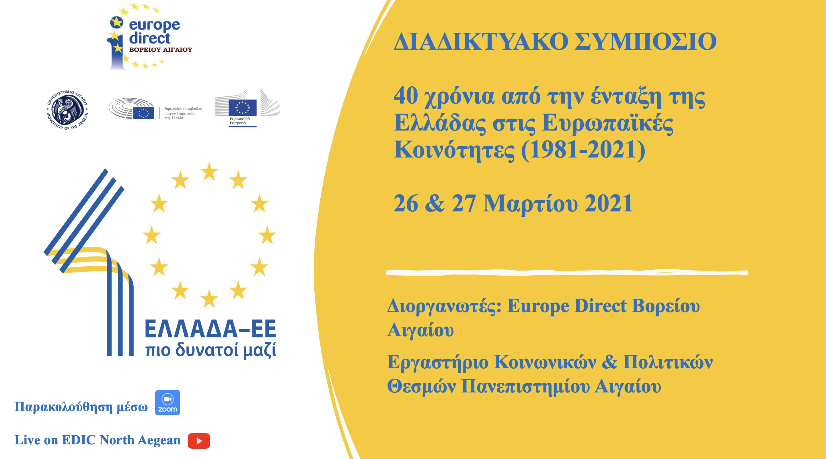 Διήμερο Διαδικτυακό Συμπόσιο με θέμα: «40 χρόνια από την ένταξη της Ελλάδας στις Ευρωπαϊκές Κοινότητες (1981 – 2021)» 4 Απριλίου, 2021