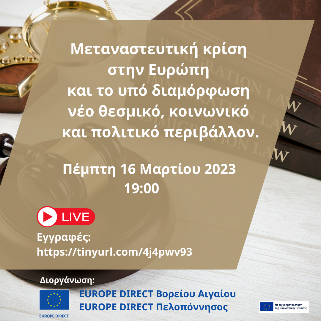“Μεταναστευτική κρίση στην Ευρώπη και το υπό διαμόρφωση, νέο θεσμικό, κοινωνικό και πολιτικό περιβάλλον” 17 Μαρτίου, 2023